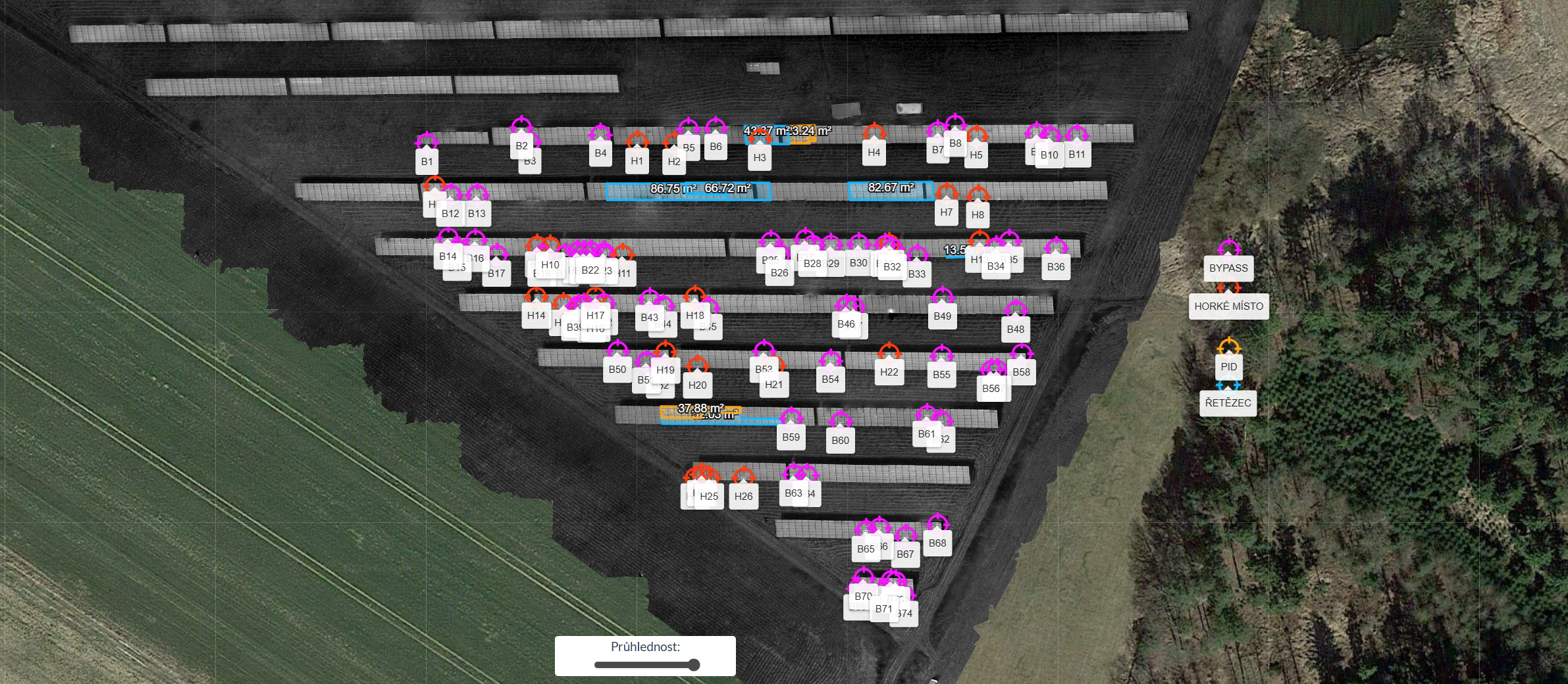 Prevence požáru – včasné odhalení přehřívajících se spojů. poškozených kabelů nebo chybných bypass diod na panelech.